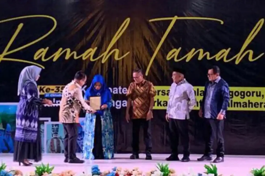Sertifikat Weda Kota Nikel Fagogoru diserahkan Kepala Divisi Pelayanan Hukum Chusni Thamrin kepada Bupati Halmahera Tengah Ikram M. Sangadji di momentum perayaan HUT Halteng.